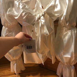 The Ria Mini brings a sense of romance to your wardrobe. Featuring side cut-outs, long puff sleeves, and a body-hugging silhouette. This style is made from a satin fabric and can be worn for any occasion. This dress is a size small and has never been worn, the tags remain and all!