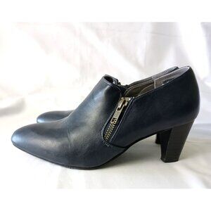 RIALTO Sarina Navy Ankle Boots Size 7 Wide Faux Leather Side Zip Booties