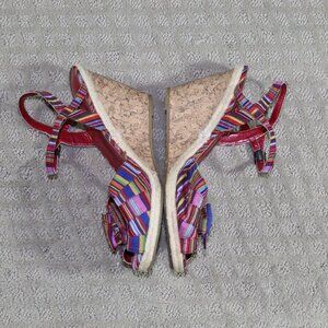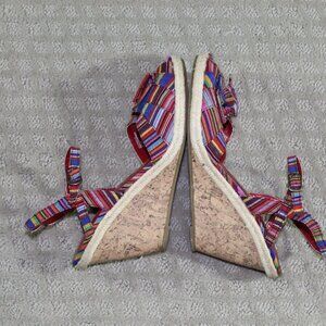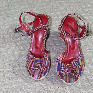 RIALTO Women's SIZE 8.5 M WEDGE BRIGHT MULTICOLOR CANVAS HEELS WITH BOWS