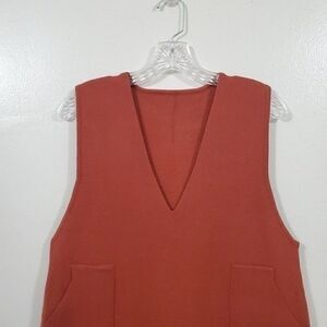 RIBBED Sleeveless Brick Color Knit Sweater Dress Over the Knee Size Medium