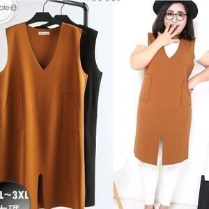 Minimalist Sweater Dress V-Neck Sleevesless Brick Color