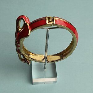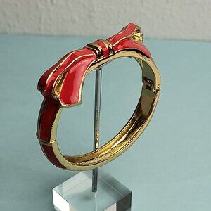 RIBBON BOW Enamel Shape Hinged Bangle Bracelet Vibrant Red Gold Plated