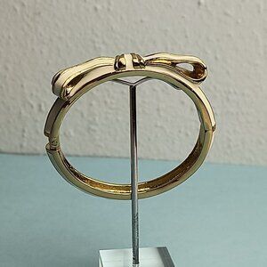 RIBBON BOW Enamel Shape Hinged Bangle Bracelet White Gold Plated