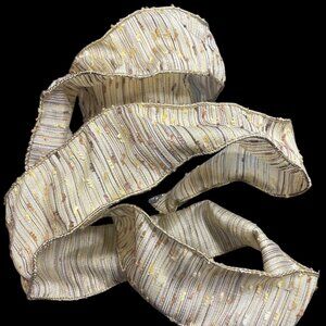 RIBBON WIRE EDGING TAN AND GOLD - 2.5 INCHES WIDE FLEXIBLE WITH WIRE EDGING - APX 8 YARDS