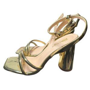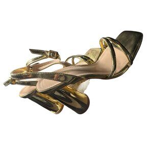 RIBONGZ Gold Block Heel Sandals With Strappy Design NWB Size 6.5