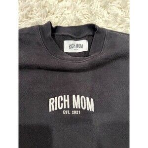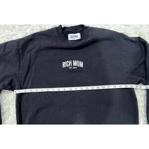 RICH MOM Embroidered Pullover Sweatshirt Womens M Black Long Sleeve Crew Neck