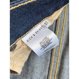 RICH & SKINNY Dark Wash Jeans size 27 (actual 28w). Featuring a 5-pocket design, stretch, logo stamped rivets, logo embossed button and a zip fly closure.