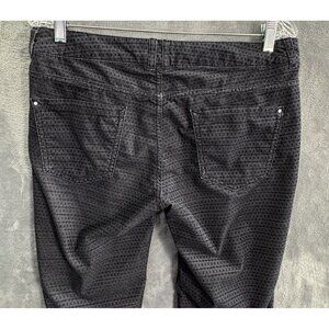These RICHMOND Women Skinny Mid Rise Pants in size 28 are perfect for work or casual wear. The black corduroy fabric adds a touch of sophistication, while the argyle/diamond pattern adds a trendy twist. With a flattering flat front and zip/button closure, these pants are both stylish and comfortable. The classic fit and skinny leg design offer a flattering silhouette, making them a versatile staple for any woman's wardrobe. Made of polyester, spandex, and cotton, these pants are easy to care for and offer a bit of stretch for added convenience.