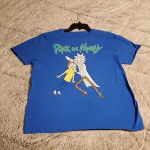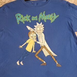 RICK AND MORTY Open Your Eyes T-SHIRT Mens L Blue Forced To Watch Cartoon Pull