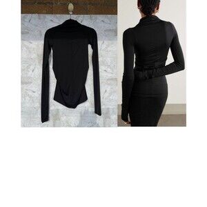 Retail $985 It's made from body-hugging stretch-jersey and looks especially chic tucked into high-rise pants. THIS LS PRONG REACHES HIGH ON THE THIGH AND HAS LONG SLEEVES. IT HAS A RUCHED BODY GATHERING INTO THE BUST, THAT FEATURES A BONED GEOMETRIC CUT-OUT FRONT AND A TIGHT-FITTING SKIRT. THIS MEDIUMWEIGHT CUPRO JERSEY IS STRETCHY WITH A SOFT AND COOL HANDFEEL. THIS JERSEY IS MADE USING CUPRO WHICH IS BIODEGRADABLE AND 100% PLANT BASED. AS IT’S MADE FROM COTTON WASTE, CUPRO HELPS FIND A PURPOSE TO FIBERS THAT WOULD OTHERWISE BE DISCARDED. 96% CUPRO + 4% ELASTANE