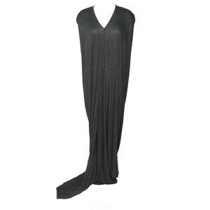 Black knit V-neck sleeveless maxi dress from Rick Owens Lilies. Viscose- and angora-blend knit, very soft and comfortable. Floor length with raw edge. Signature Rick Owens drapery. Made in Italy. Size 40 IT.