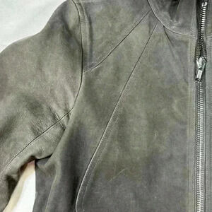 RICK OWENS Men Zipped Calf Leather Jacket in Dark Dust Size 38US