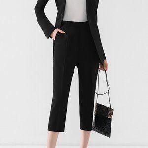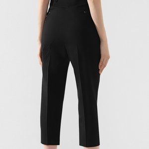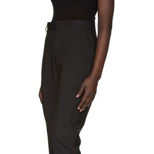 These black Easy Astaire trousers are crafted from a virgin wool blend and feature a high waist, a button and zip fly, a waistband with belt loops, a tapered leg and a cropped length. Relaxed-fit stretch wool trousers in black. Mid-rise. Cropped leg. Dropped inseam. Four-pocket styling. Button-fly. Tonal stitching.