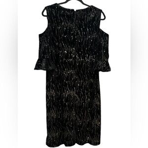 RICKIE FREEMAN TERI JON BLACK VELVET SEQUIN COLD SHOULDER SHEATH DRESS 16