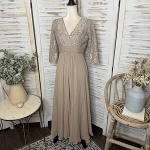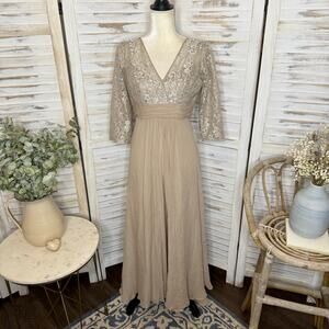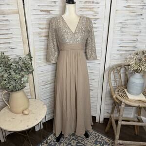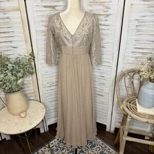 RICKIE FREEMAN TERI JON Women's 10 Lace Bodice Silk Gown Dress Champaign Sparkly