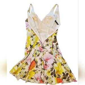 RICKIE FREEMAN for TERI JON Floral Cotton Dress Sz 10 has a lining flaw