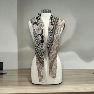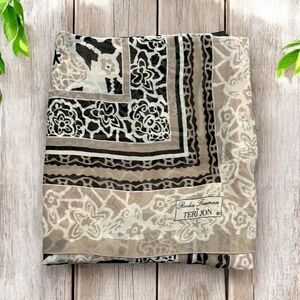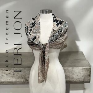 RICKIE FREEMAN for TERI JON Women’s Vintage Floral Print Chiffon Large Scarf in Beige/Black
