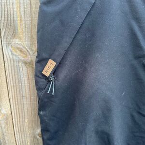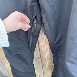 Ride snow pants in size XL, designed for women, come in a classic black color. Made from 100% polyester, these pants feature durable fabric, reinforced seams, zippered pockets, and an adjustable waistband. They are ideal for winter occasions, providing comfort and functionality in cold weather. The pants have a zip closure and are suitable for regular size types. This pre-owned item is perfect for winter sports or casual winter outings. Keywords: Ride, snow pants, women's clothing, black, XL, winter wear, polyester, zip closure, durable, adjustable waistband, pre-owned, winter sports, casual wear, reinforced seams.