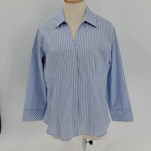 RIDERS BY LEE. Women's blouse with blue and white striped. 3/4 sleeves. Size lg