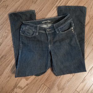 EUC, blue, size 9/10 M, four pockets, approx. dims.: waist laid flat 17", rise 9.5", inseam 31"