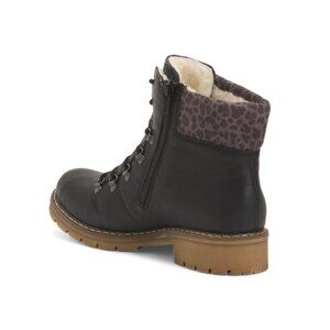 chunky heel, size chart conversion may vary slightly by country, fully lined interior, animal print cuff detail