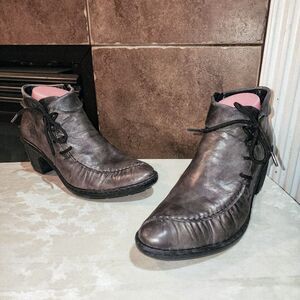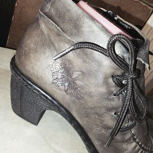 RIEKER REBECCA 9.5/10 Antistress Side Zip & Lace Up Leather Heel Ankle Booties
