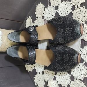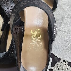 Good used condition Rieker Black leather sandals women's size 40. Velcro strap. 1.5 heel