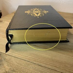 FEATURES: RIBBON BOOKMARK, GILDED EDGES. GENUINE PIGSKIN BINDING, SPINES ARE BRASS-DIE STAMPED IN 22-KARAT GOLD. ENDLEAVES ARE 300-DENIER SILK MOIRÉ