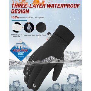 🧿Three-layer Waterproof Design, 100% Waterproof and Windproof: Mens winter gloves waterproof insulated built-in a premium waterproof bag! Palm and back crafted from waterproof leather and high-quality nylon for true wind and waterproof performance. Even when immersed, heated gloves won't leak, ensuring you stay protected from the elements while fishing, cycling in the rain, shoveling snow, or working. No more worries about wind penetration or cold, damp hands