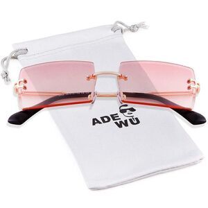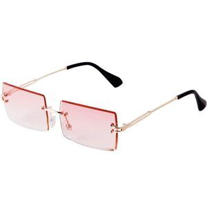 RIMLESS Rectangle Sunglasses Pink & Gold