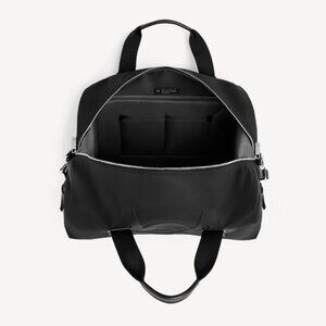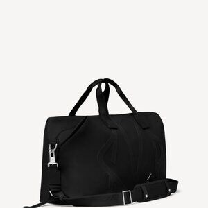 Crafted from a sustainable ECONYL® nylon that is supple and water-repellent, the RIMOWA Signature Duffle Bag in black offers travelers a lightweight and modern companion for both daily and travel needs and features several smart functionalities: