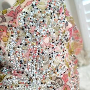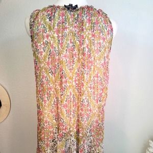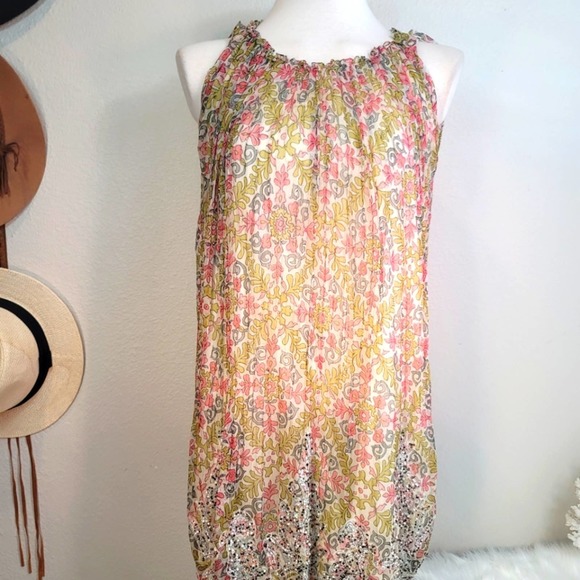 Anthropologie Rina Dhaka Gathered Sleeveless Beaded Floral Silk Chiffon Tent Dress Size S.