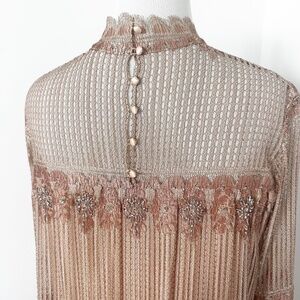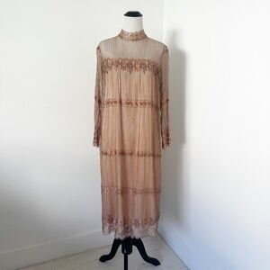 RINA DI’MONTELLA Vintage Midi Shift Pink Size 10 Dress 100% Silk Lace Crystals