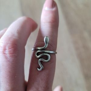 Listed separately and together in my closet. Black heart ring is adjustable, silver snake ring is size 7