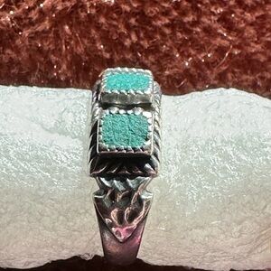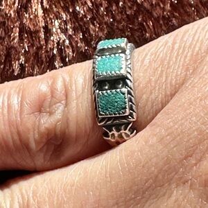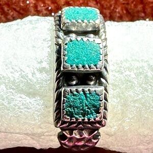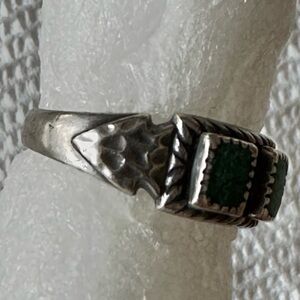 RING Green Malachite 3 Stones Size 6 Sterling Silver Unisex Genuine Gems 5505 Y