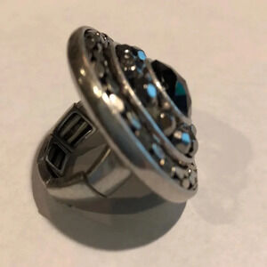 RING NEW WOMENS BLACK STONE CHUNKY COSTUME JEWELRY ELASTIC