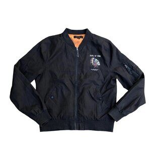 RING OF FIRE Speed Power Victory Bomber Jacket LG Men's Full Zip Black Skull