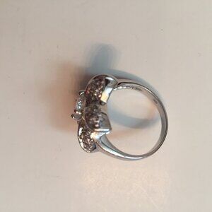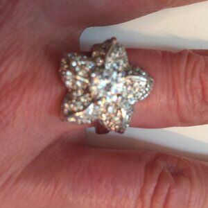 RING FLOWER BLING SPARKLE CUBIC ZIRCONIA CZ STERLING SILVER 925 SIZE 8 STUNNING STATEMENT JEWELRY