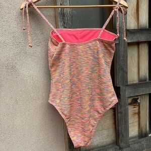 RIO BEACH colorful swimsuit size 7 (S-M) with fluorescent pink cups and lining The measurements of the swimsuit are: Total length 26.7” waist 13” chest 13.5