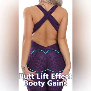 RIOJOY Womens Yoga Jumpsuits Butt Lifting Workout Sexy Romper Texture Bodysuit