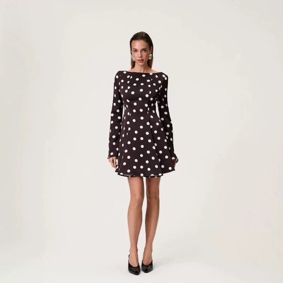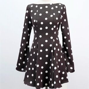 Step out in style with this elegant black and white polka dot dress. Featuring long sleeves and a classic design, it's perfect for any occasion.
