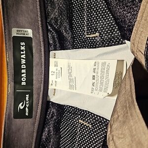 Rip Curl Jackson Boardwalk (in water/on land) Boys Shorts. These shorts are appropriate for a family outing or a day at the beach! Belt loop waist. Button closure with zip fly. Slant hand pockets. Pocket Flap and welt button pockets on back. Label patch at back pocket. (Picture size 12)