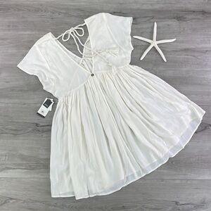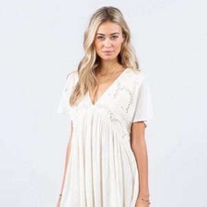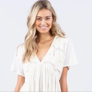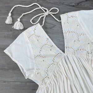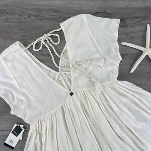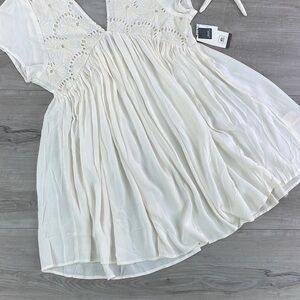 all-white mini with a delicate ebroidery detail and back-tie closure