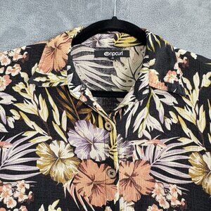 RIP CURL Women Shirt Size M Black Paradise Calling Floral Kimono Sleeves 6-23