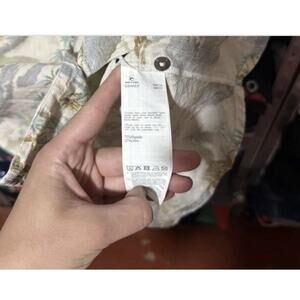 Rip Curl linen blend casual button shirt with beige tropical scenes, two breast pockets. Please check the measurements so a return won’t be necessary. MWF shipping. Your satisfaction is important to me!