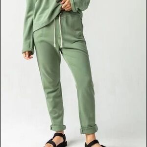 Organic fleece sweatpants and you can really tell the quality of the material is soft stretchy and the perfect style