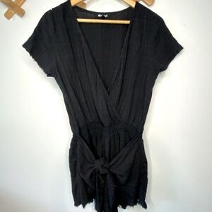 RIPCURL Black V-Neck Romper with Skirted Tie Front Detail, Size Large