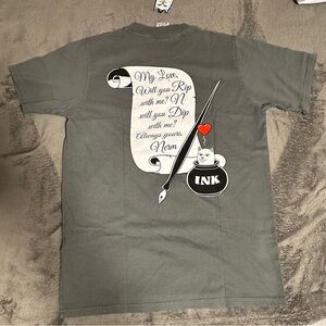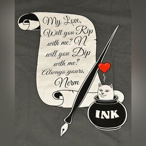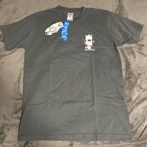 Explore comfort and style with the RIPNDIP Gray Cat Graphic T-Shirt. Featuring a playful cat design, this shirt is perfect for cat lovers. Ok lol… OK this is a brand new shirt size medium. Please look at all the pictures. Have any questions or comments. Send them to me. Thank you.