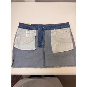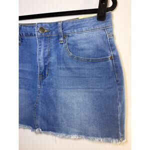 Get ready for some fun with this casual, stretchy denim mini skirt! This skirt is brand new with tags and features a light indigo wash. The classic design includes both front and back pockets, perfect for everyday wear.