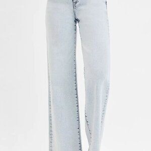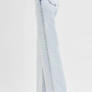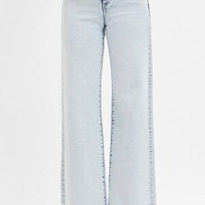 *These stunning light wash wide leg jeans feature a high-waisted design that creates a flattering silhouette while offering modern comfort. Crafted from premium stretch denim in a beautiful light blue wash, these jeans showcase classic five-pocket styling with contemporary wide leg cut. The raw hem detailing adds an edgy touch while the comfortable fabric blend ensures all-day wearability. Perfect for creating effortless casual looks or dressing up with heels for a chic ensemble. The high waist design accentuates your natural waistline while the wide leg provides a relaxed, on-trend fit.